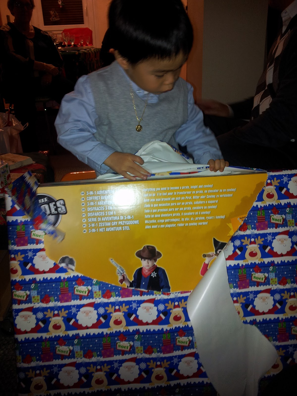 Bon on a un peu raté notre coup puisque Augustin a reconnu son Papa. On a fait passer la chose en lui disant que le Père Noël n'avait pas le temps de passer chez tous les enfants et qu'il avait demandé à Papa de le remplacer. Il a eu bien du mal à nous croire.